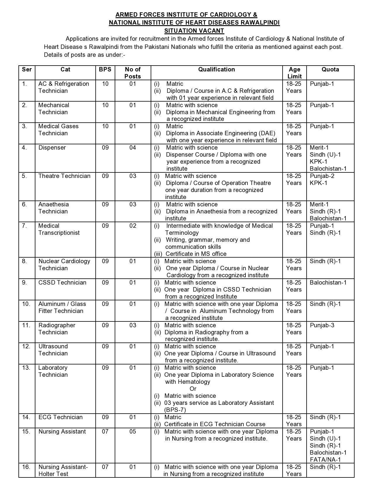 Written Test of Short listed Candidates for the Post of BPS-6 to BPS-10 will be held on 18 May 2024 (Saturday) at 09:00am in Armed Forces Institute of Cardiology, The Mall Road Saddar Rawalpindi.